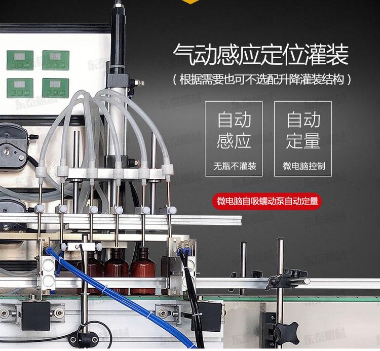 1、消毒水液體灌裝旋蓋線所有元件均采用,電機為優(yōu)質(zhì)臺邦電機,快捷更換蠕動泵管配置,清洗更方便。機身為鋁合金+不銹鋼。本機操作簡單、直觀方便,自動感應(yīng),無瓶不灌裝,灌裝和旋蓋部分過渡,可獨立使用灌裝機或者旋蓋機部分,另旋蓋機標配自動分瓶功能,方便小瓶旋蓋,性能穩(wěn)定,可靠,效率高。